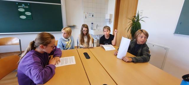 Am 24.10.2024 fand der „Green-Team-Tag“ der Klasse 7a statt. Die ersten Klassen wurden für jeweils eine Schulstunde nacheinander empfangen und von den OberstufenschülerInnen über Mülltrennung, umweltfreundliche Verkehrsmittel und richtiges Lüften unterrichtet. Höhepunkte des Tages waren für die ersten Klassen das Einpflanzen und Benennen kleiner Grünlilien, der Mülltrennungs-Wettkampf, das Nachspielen umweltfreundlicher Verkehrsmittel und dem Weg der Luft vom Fenster zur Tür nachzugehen. Zum Schluss wurden SchülerInnen dafür eingeteilt, sich um das richtige Lüften oder das Gießen der neuen Bewohner zu kümmern. Die ersten Klassen hatten nicht nur jede Menge Spaß, sondern wurden durch die Aktion darauf aufmerksam gemacht, wie wir in unserem Schulalltag besser auf die Umwelt achten können.