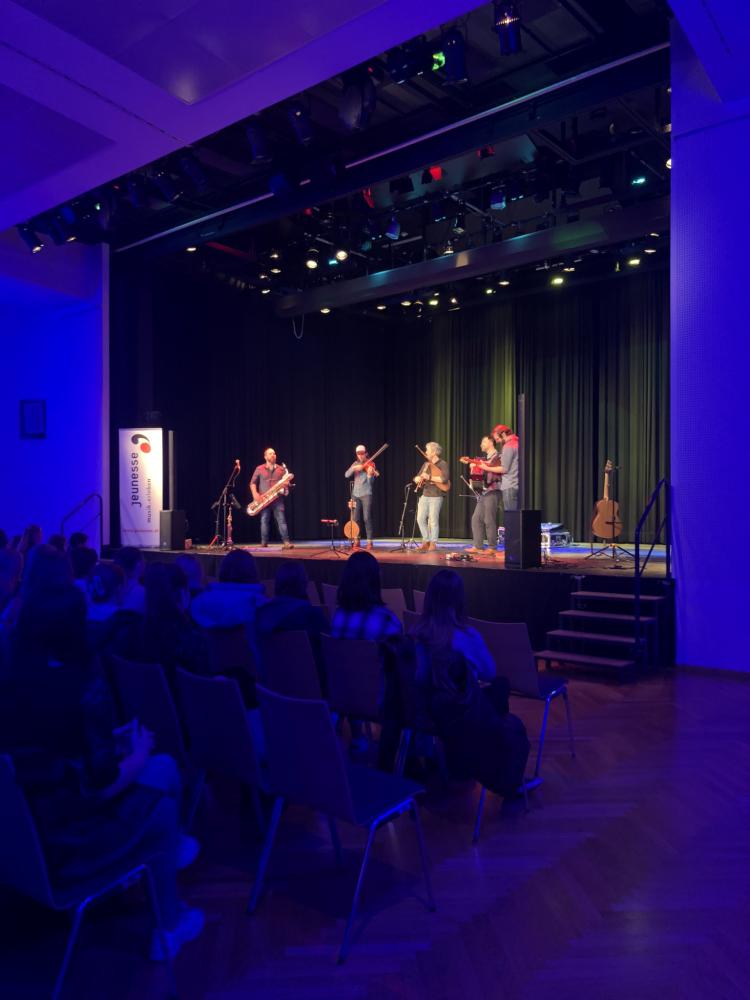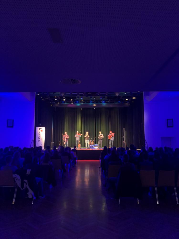 Im Rahmen eines Jeunesse-Konzertes begeisterte die Gruppe WÖR unsere Oberstufenschüler:innen. Die fünf Musiker aus Belgien zeigten ihr Können auf verschiedenen Instrumenten, wobei das Interesse v.a. für den Dudelsack sehr groß war. Mit einem abwechslungsreichen Programm und kurzweiligen Zwischenmoderationen fand das Konzert großen Anklang. Als es dann noch ums Mitmachen ging, klatschten und sangen alle kräftig mit.